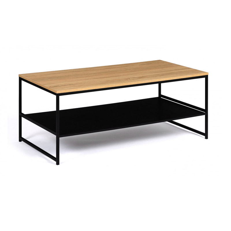 Το τραπέζι, από την εταιρία Idomya, έχει μεταλλικό πλαίσιο με ξύλινη επιφάνεια από μοριοσανίδες. Κάτω από την επιφάνεια, υπάρχει ένα μεγάλο ράφι για την τοποθέτηση βιβλίων, περιοδικών, τηλεχειριστηρίων, διακοσμητικών κλπ.