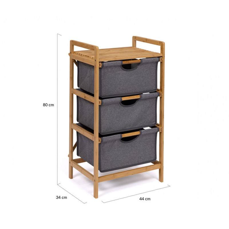 Ξύλινη Ραφιέρα Μπάνιου από Μπαμπού με 3 Υφασμάτινα Συρτάρια 44 x 34 x 80 cm Idomya Maya 30012286