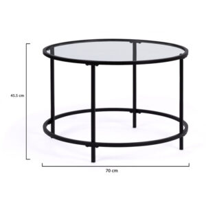 Μεταλλικό Στρογγυλό Τραπέζι Σαλονιού με Γυάλινη Επιφάνεια 70 x 70 x 45 cm Siena Idomya 30089531