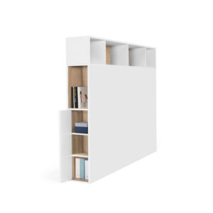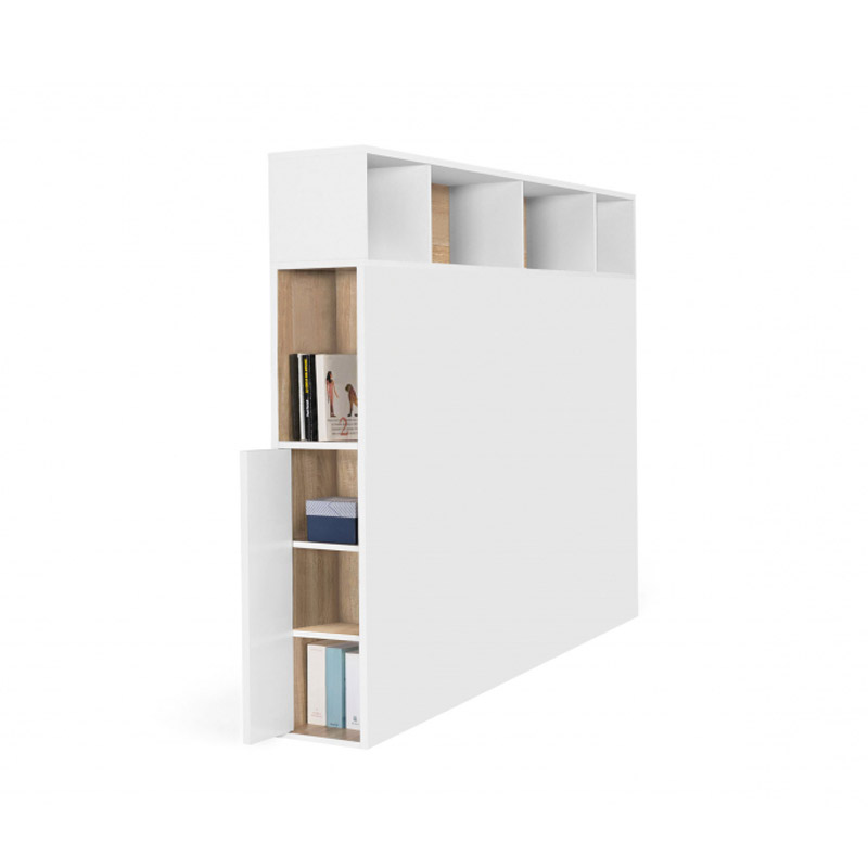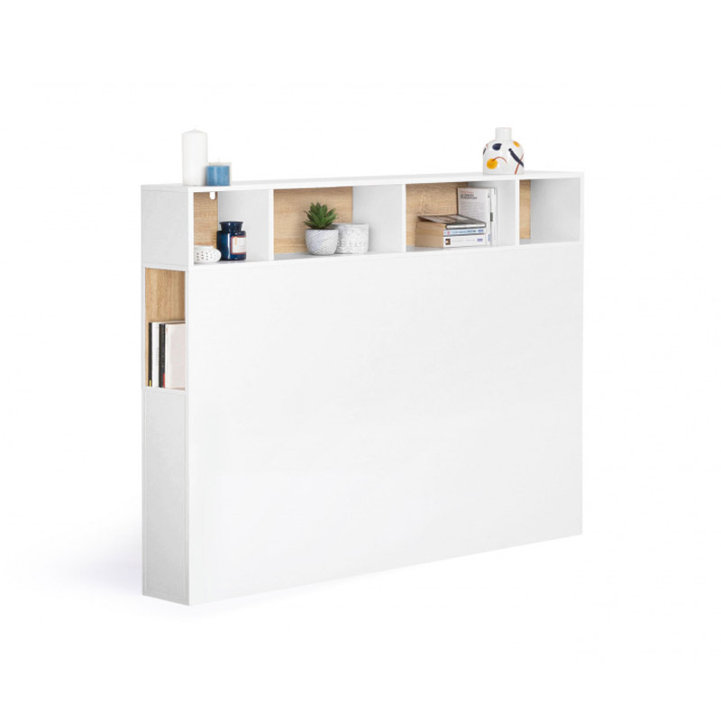 Το κεφαλάρι κρεβατιού, από την εταιρία Idomya, είναι κατασκευασμένο από μοριοσανίδες. Διαθέτει 4 ράφια στο μπροστινό μέρος και 1 στο πλάι, καθώς και 1 πλευρικό ντουλάπι με 3 εσωτερικά ράφια.