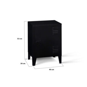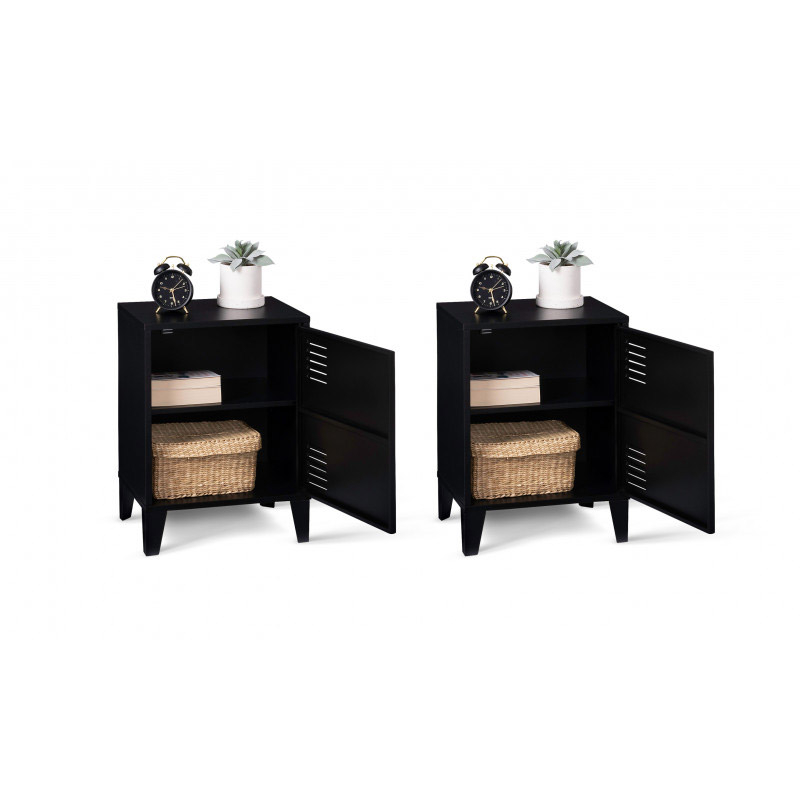 Το σετ, από την εταιρία Idomya, περιλαμβάνει 2 κομοδίνα σε μαύρο χρώμα. Τα κομοδίνα, διαθέτουν σώμα από μοριοσανίδα με πόδια και πόρτες από μέταλλο.