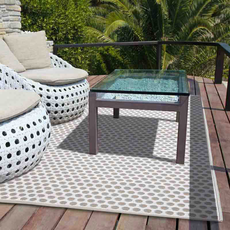Το χαλί εξωτερικού χώρου, από την εταιρία Inkazen, θα δώσει ιδιαίτερο στιλ στη βεράντα και σε οποιονδήποτε εξωτερικό χώρο του σπιτιού σας. Κατασκευασμένο από 100% πολυπροπυλένιο / 350g / m², είναι εύκολο στη συντήρηση και πλένεται με νερό.