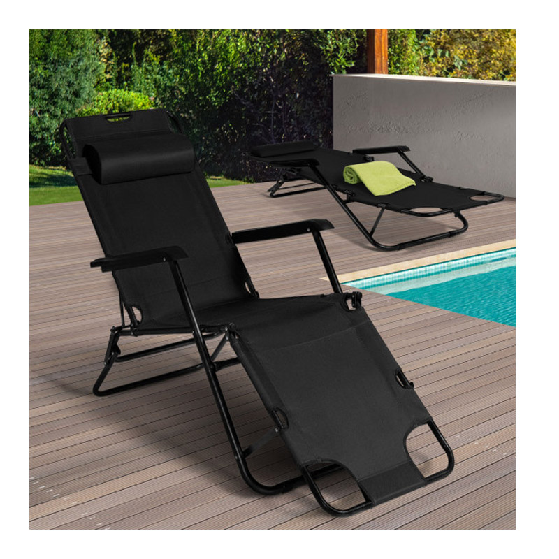 Σετ Μεταλλικές Πτυσσόμενες Καρέκλες Κήπου – Ξαπλώστρες 178 x 61 x 33 cm Χρώματος Μαύρο 2 τμχ Inkazen 40044366