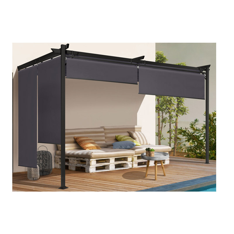 Η επιτοίχια πέργκολα, από την εταιρία Inkazen, διαθέτει μεταλλική κατασκευή από ατσάλι και πτυσσόμενη οροφή από καμβά πολυεστέρα 180 g / m². Ιδανική για να απολαύσετε οποιαδήποτε κοινωνική συνάθροιση και να παραμείνετε προστατευμένοι από τα καιρικά στοιχεία. Διαθέτει 4 ενσωματωμένες τέντες, οι οποίες αφαιρούνται και τοποθετούνται περιμετρικά σε οποιοδήποτε σημείο της πέργκολας, δημιουργώντας επιπλέον σκιά και ιδιωτικότητα.