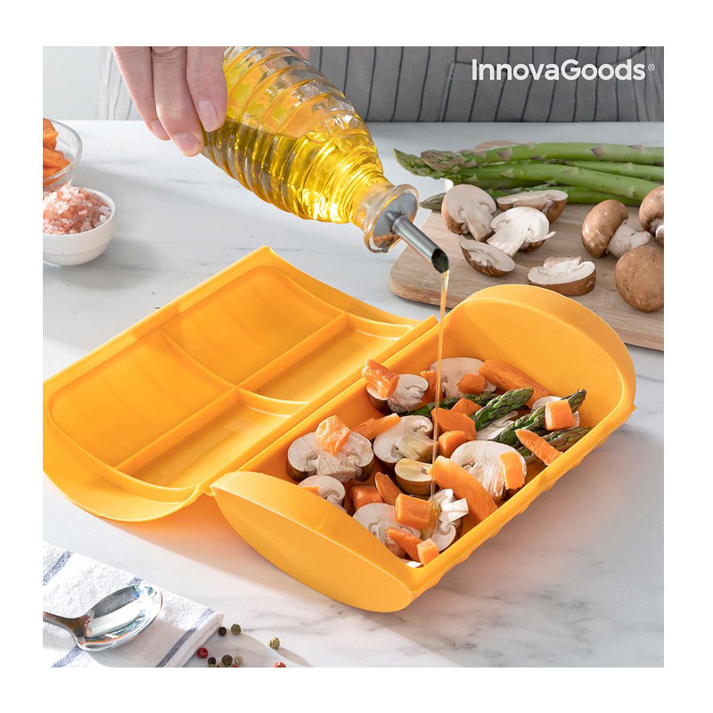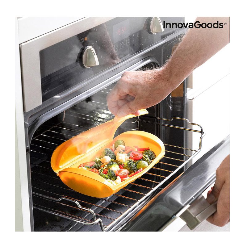 Η θήκη σιλικόνης, από την εταιρία InnovaGoods, είναι ένας γρήγορος και εύκολος τρόπος για να ετοιμάσετε πιο υγιεινά πιάτα με χαμηλά λιπαρά για να φροντίσετε τη διατροφή σας, βελτιώνοντας την υγεία και τη σιλουέτα σας. Το φαγητό μαγειρεύεται με τον δικό του χυμό, διατηρώντας τα θρεπτικά συστατικά και τις βιταμίνες και ενισχύοντας την αρχική του γεύση.