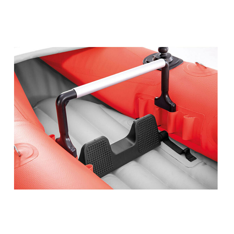 Το καγιάκ, διαθέτει ισχυρή κατασκευή 3 στρωμάτων από υψηλής μοριακής μάζας PVC, το οποίο αντιστέκεται στην τριβή, την ηλιακή ακτινοβολία, τα λάδια και το θαλασσινό νερό. Το αναπαυτικό φουσκωτό κάθισμα με πλάτη είναι ρυθμιζόμενο και αφαιρούμενο. Το αποθηκευτικό τμήμα στην πρύμνη και την πλώρη είναι ιδανικό για να τοποθετείτε τα αντικείμενά σας. Είναι εφοδιασμένο με υψηλής πίεσης βαλβίδες ελατηρίου, για γρήγορο φούσκωμα και ξεφούσκωμα. Η αφαιρούμενη τρόπιδα στο κάτω μέρος ενισχύει τη σταθερότητα της πλεύσης. Τα σχοινιά αρπαγής στις δύο πλευρές διευκολύνουν τη μεταφορά του. Μπορεί να διπλωθεί και να συμπιεστεί για εύκολη αποθήκευση και μεταφορά όταν δε χρησιμοποιείται.