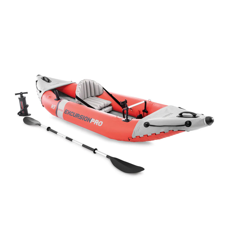 Το φουσκωτό πλαστικό καγιάκ Excursion Pro K1, από την εταιρία INTEX, είναι ιδανικό για ψυχαγωγικές δραστηριότητες στην πισίνα ή σε μία ήσυχη λίμνη. Πρόκειται για ένα sit in καγιάκ, δηλαδή κάθεστε μέσα στο καγιάκ, με τα πόδια λυγισμένα και καλύπτεστε από αυτό από τα πόδια έως και την μέση. είναι κατάλληλο για 1 άτομο και μπορεί να μεταφέρει μέχρι και 100 Kg βάρος.
