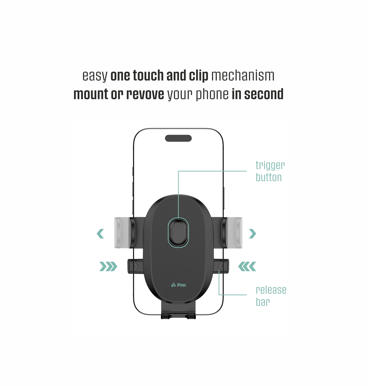 Η βάση iPEAX CLIP-1 είναι μια πρακτική, μηχανική βάση κινητού σχεδιασμένη για το ταμπλό ή το παρμπρίζ του αυτοκινήτου σας. Εξασφαλίζει σταθερό και ασφαλές κράτημα για το κινητό σας κατά τη διάρκεια της οδήγησης. Διαθέτει ένα απλό αλλά αποτελεσματικό σύστημα με δύο μοχλούς απελευθέρωσης στο πίσω μέρος, για γρήγορη και εύκολη αφαίρεση της συσκευής σας—απλώς πατήστε και αφήστε.