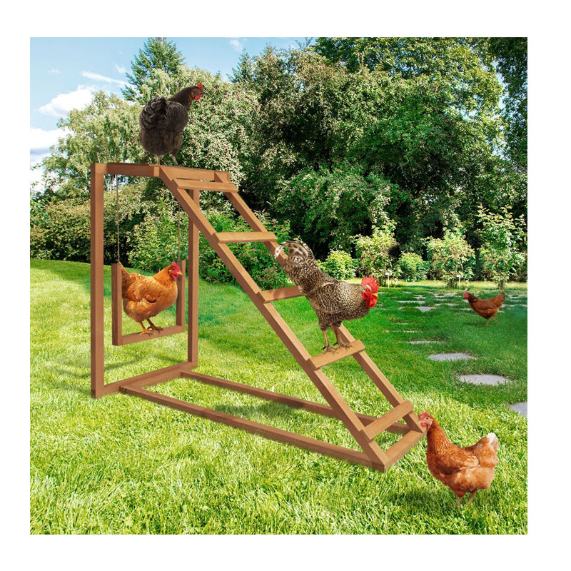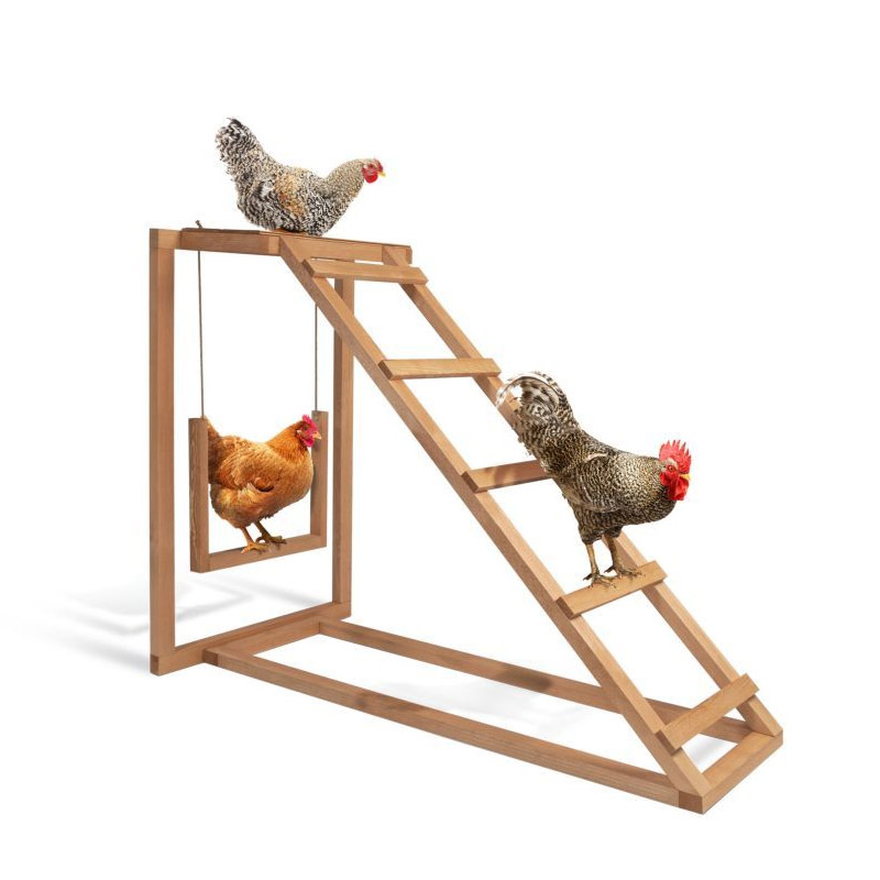 Η ξύλινη πλατφόρμα πουλερικών, από την εταιρία Jardikt, είναι κατασκευασμένη από Καναδικό πεύκο. Διαθέτει σκάλα με 5 σκαλοπάτια και κούνια με σχοινιά.