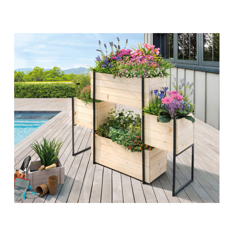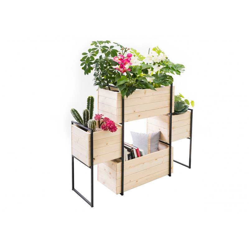 Η ζαρντινιέρα, από την εταιρία Jardikt, είναι ιδανική για την καλλιέργεια λουλουδιών, αρωματικών φυτών ή λαχανικών. Ο συνδυασμός ξύλου και μετάλλου, της δίνει μια βιομηχανική εμφάνιση, που θα δώσει μια νότα μοντέρνου και κομψού στη βεράντα ή το μπαλκόνι σας. Διαθέτει 4 θέσεις από φυσικό ξύλο και βάση από ατσάλι.