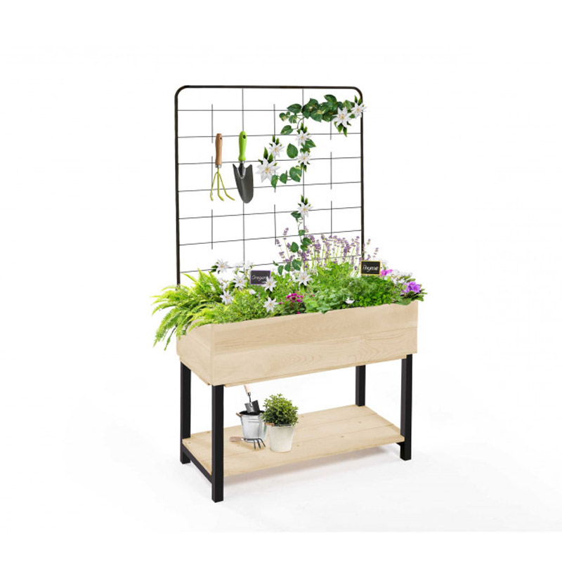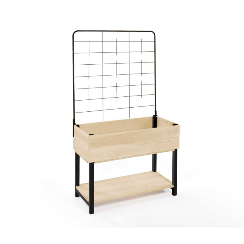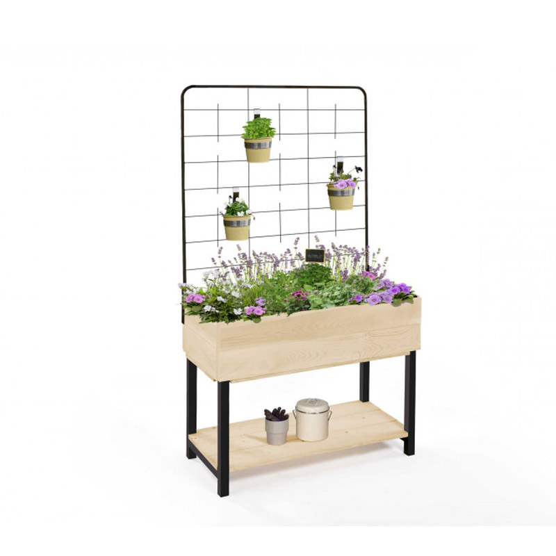 Η ζαρντινιέρα, από την εταιρία Jardikt, είναι κατασκευασμένη από ξύλο πεύκου, και είναι ιδανική για την κατασκευή συνθέσεων με λουλούδια ή για την καλλιέργεια φρούτων, λαχανικών ή αρωματικών φυτών. Διαθέτει μεγάλο χώρο στο πάνω μέρος για να φυτέψετε διάφορα λουλούδια, ένα ράφι στο κάτω μέρος για διάφορα αξεσουάρ και αφαιρούμενο ατσάλινο πλέγμα για αναρριχώμενα φυτά.
