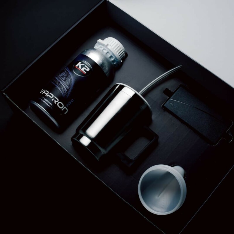 Το K2 Vapron είναι μια επαναστατική μέθοδος αναγέννησης κατεστραμμένων προβολέων αυτοκινήτων, χωρίς την ανάγκη αποσυναρμολόγησης. Η λειτουργία του κιτ βασίζεται στην ανακατασκευή του διαφανούς στρώματος πολυανθρακικού, εφαρμόζοντας μια νέα, υγρή επίστρωση πολυανθρακικού, ανακατασκευάζοντας τη δομή του φακού του προβολέα.