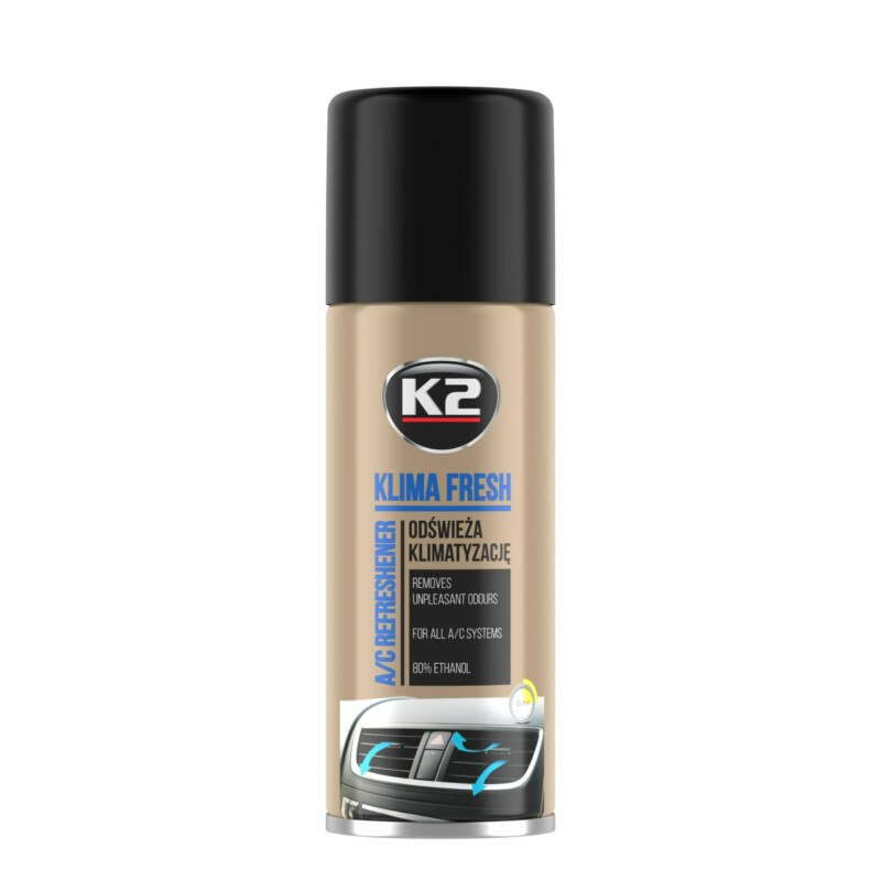 Το K2 KLIMA FRESH είναι ένα εξαιρετικά αποτελεσματικό και εύκολο στη χρήση αποσμητικό κλιματιστικού. Αφαιρεί τις δυσάρεστες οσμές που προκαλούνται από τη βρωμιά και την υγρασία στο σύστημα εξαερισμού. Η όλη διαδικασία διαρκεί μόλις λίγα λεπτά. Κατάλληλο για όλους τους τύπους κλιματιστικών. Αφήνει μια φρέσκια μυρωδιά μετά τη χρήση.