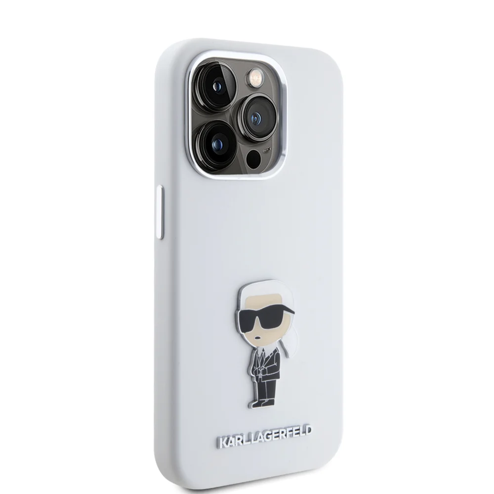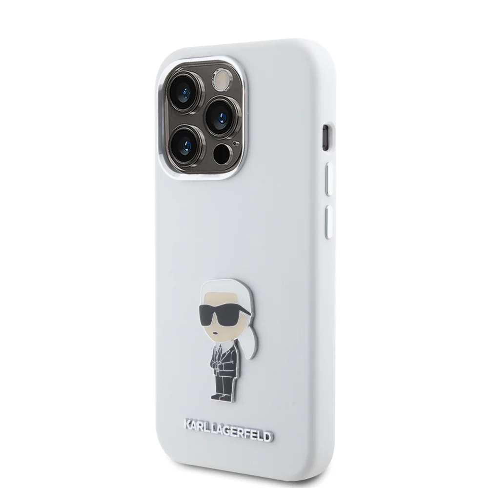 Karl Lagerfeld Ikonik Metal Pin Hard Case Θήκη προστασίας από σιλικόνη – iPhone 15 Pro (White – KLHCP15LSMHKNPH)