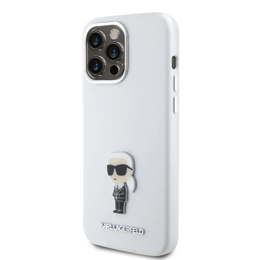 Karl Lagerfeld Ikonik Metal Pin Hard Case Θήκη προστασίας από σιλικόνη – iPhone 15 Pro Max (White – KLHCP15XSMHKNPH)