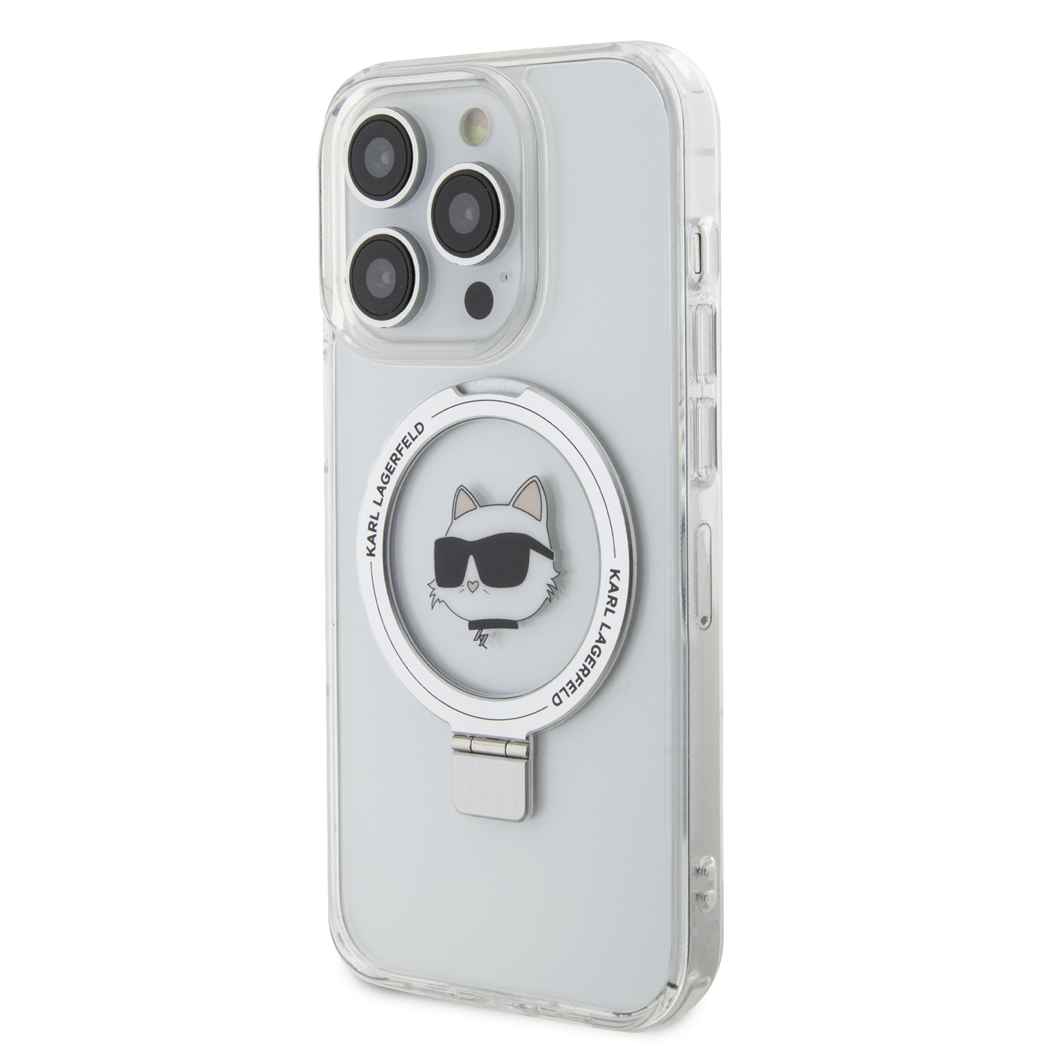Karl Lagerfeld Magsafe Ringstand Case “Choupette’s Head” Θήκη προστασίας από σκληρό πλαστικό για iPhone 15 Pro (White – KLHMP15LHMRSCHH)