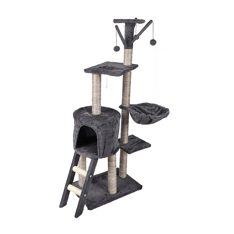 Το δέντρο γάτας – ονυχοδρόμιο, από την εταιρία Kats, αποτελεί ιδανική επιλογή για να παίζει το κατοικίδιό σας και παράλληλα να γρατζουνίζει, χωρίς να βλάψει διάφορα αντικείμενα στο χώρο. Κατασκευασμένο από εξαιρετικά ανθεκτικό βελούδινο πανί, διαθέτει μία σκάλα με σχοινί σιζάλ, μία αιώρα ανάπαυσης, ένα σπιτάκι, στήλες με σχοινί σιζάλ, τρεις πλατφόρμες και δύο κρεμαστά παιχνίδια.