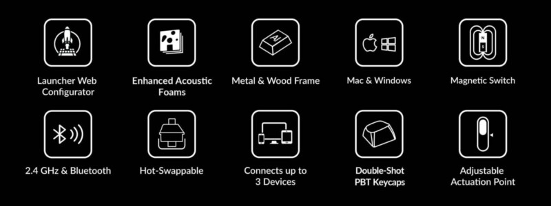 Τα καπάκια πλήκτρων PBT (shine-through cherry profile για την τυπική έκδοση, non-shine-through OSA profile για τις ειδικές εκδόσεις) θα παρέχουν εξαιρετική αντοχή στα λάδια, θα βελτιώσουν την αίσθηση των τύπων και θα αποτρέψουν το ξεθώριασμα των λεζάντων.