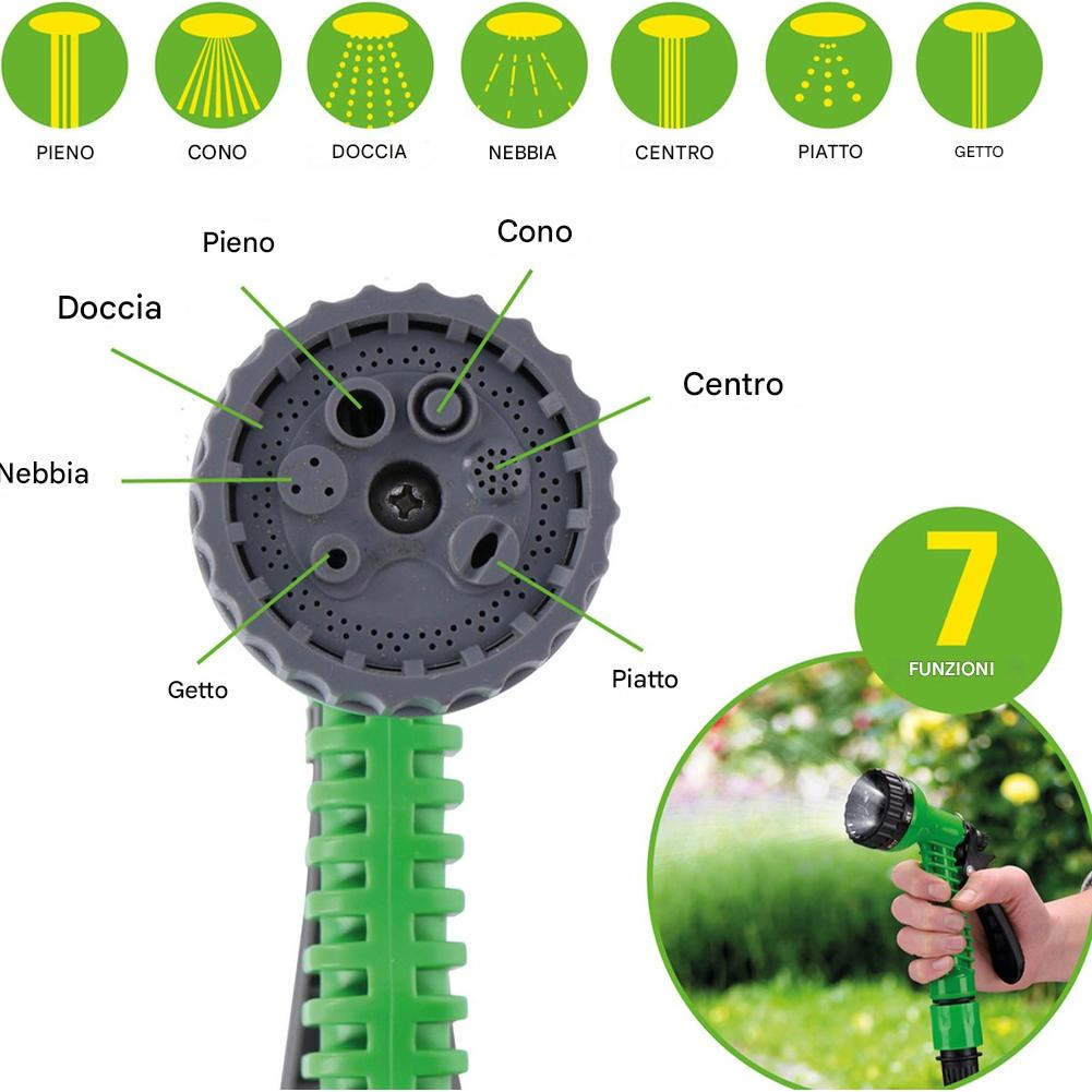 Όταν το νερό είναι ανοιχτό, ο λάστιχος επεκτείνεται, ενώ όταν δεν υπάρχει νερό, επιστρέφει στο αρχικό του μέγεθος. Ένα εξαιρετικά ελαφρύ προϊόν που καταργεί την ανάγκη για βαριά και ογκώδη συμβατικά λάστιχα. Επιπλέον, περιλαμβάνεται πιστόλι νερού με 7 διαφορετικές επιλογές ροής για κάθε ανάγκη σας.