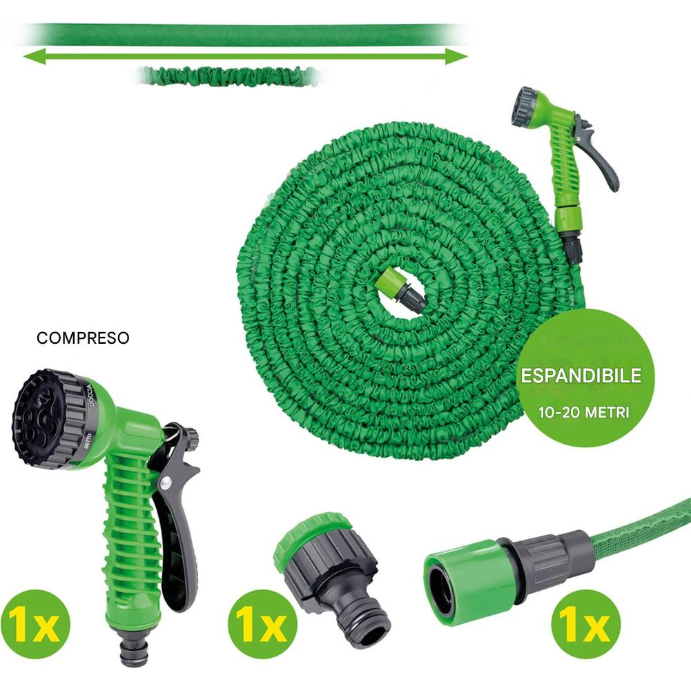 Η συντήρηση του κήπου και της βεράντας σας γίνεται παιχνιδάκι με αυτόν τον επαναστατικό επεκτάσιμο λάστιχο. Αυτός ο ευέλικτος λάστιχος έχει μήκος 10 μέτρων και μπορεί να επεκταθεί έως και 20 μέτρα, προσφέροντάς σας μεγαλύτερη ελευθερία κινήσεων κατά τη φροντίδα του κήπου σας. Όταν δεν χρησιμοποιείται, καταλαμβάνει ελάχιστο χώρο, καθιστώντας τον απαραίτητο για όλους.