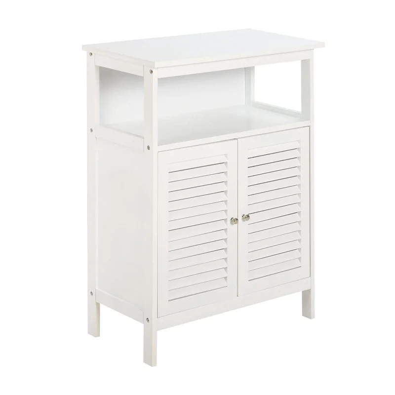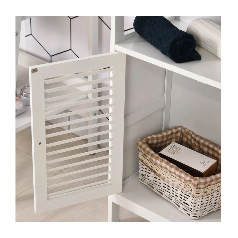 Το ντουλάπι από την εταιρεία Kleankin είναι κατασκευασμένο από υψηλής ποιότητας MDF ξύλο καλυμμένο με βερνίκι, ανθεκτικό στην υγρασία και με εύκολο καθαρισμό. Διαθέτει 2 πόρτες, μεγάλο εσωτερικό χώρο αποθήκευσης και επιπλέον 2 ράφια στο πάνω μέρος. Ιδανικό για την αποθήκευση πετσετών, προϊόντων καθαρισμού και διάφορων αξεσουάρ μπάνιου.
