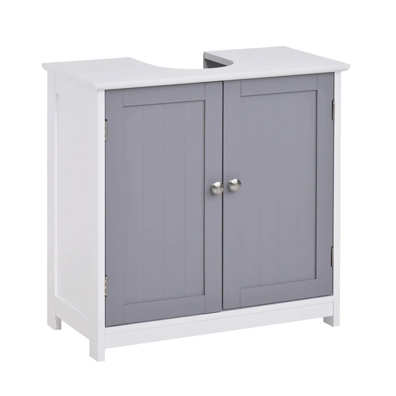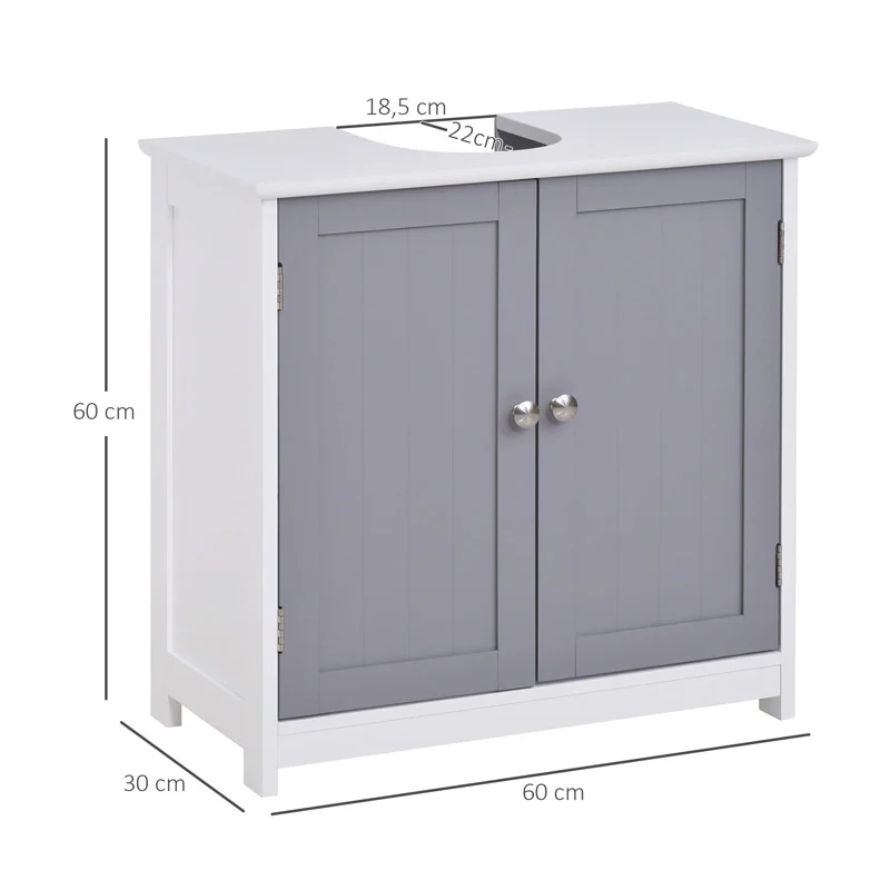 Το ντουλάπι νιπτήρα, από την εταιρεία Kleankin, είναι κατασκευασμένο από MDF ξύλο με λεία λακαρισμένη επιφάνεια. Χάρη στην αποκοπή σχήματος U, χωράει κάτω από τον νιπτήρα για εξοικονόμηση χώρου, ενώ οι σωλήνες δεν εμφανίζονται στο εσωτερικό του. Ένα ράφι με δυνατότητα ρύθμισης του ύψους στο εσωτερικό του, μπορεί να προσαρμοστεί ξεχωριστά στις ανάγκες σας.