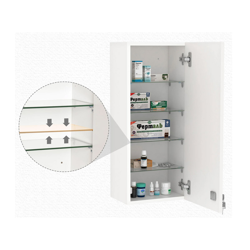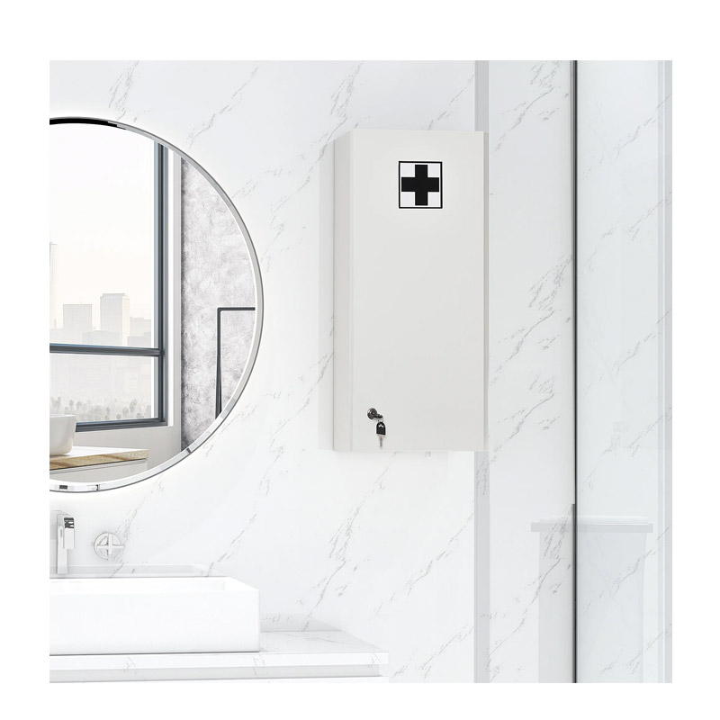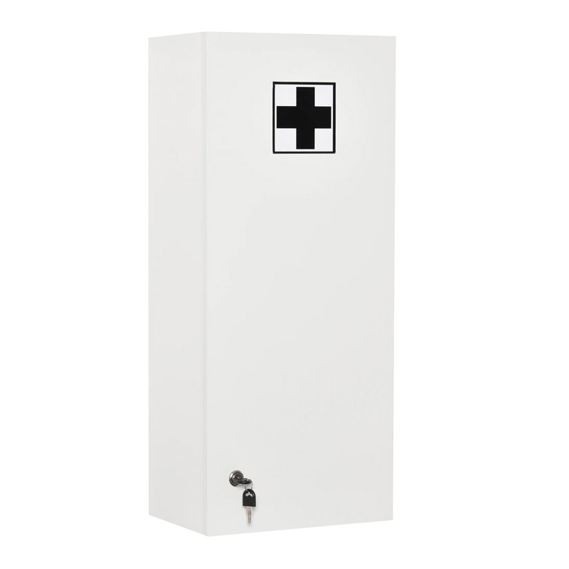 Το ντουλάπι φαρμακείου, από την εταιρία Kleankin, είναι κατασκευασμένο από ανθεκτικές μοριοσανίδες, χαρακτηριστικό που το καθιστά ανθεκτικό στον χρόνο και στις χρήσεις. Διαθέτει 4 γυάλινα και ρυθμιζόμενα σε ύψος ράφια και πόρτα που ασφαλίζει με κλειδί. Εξασφαλίζει μια ασφαλή και οργανωμένη αποθήκευση των φαρμάκων και άλλων πρώτων βοηθειών και είναι ιδανικό για ιατρείο, σπίτι, γραφείο, αθλητικό σωματείο και εργαστήριο.