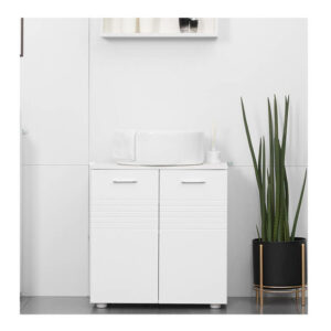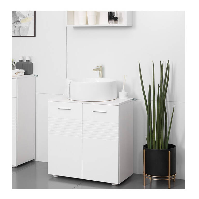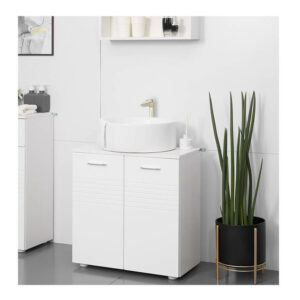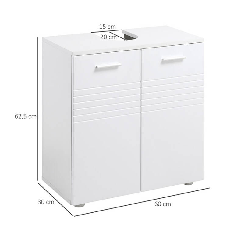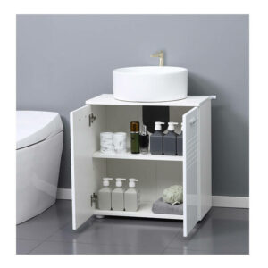 Το ντουλάπι νιπτήρα, από την εταιρία Kleankin, είναι κατασκευασμένο από μοριοσανίδες για μακροχρόνια χρήση. Διαθέτει εσωτερικό και ρυθμιζόμενο ράφι για να καλύψει διαφορετικές ανάγκες αποθήκευσης και χάρη στην κοπή σε σχήμα U, μπορεί να τοποθετηθεί εύκολα γύρω από το νεροχύτη και τους σωλήνες.