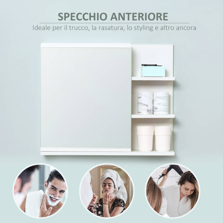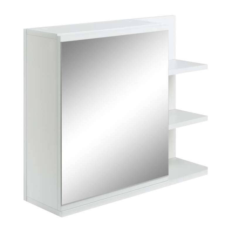 Kleankin Καθρέφτης Μπάνιου Τοίχου με Πόρτα και 3 Πλευρικά Ράφια από Ξύλο, 60x18x50cm, Λευκός 834-378WT