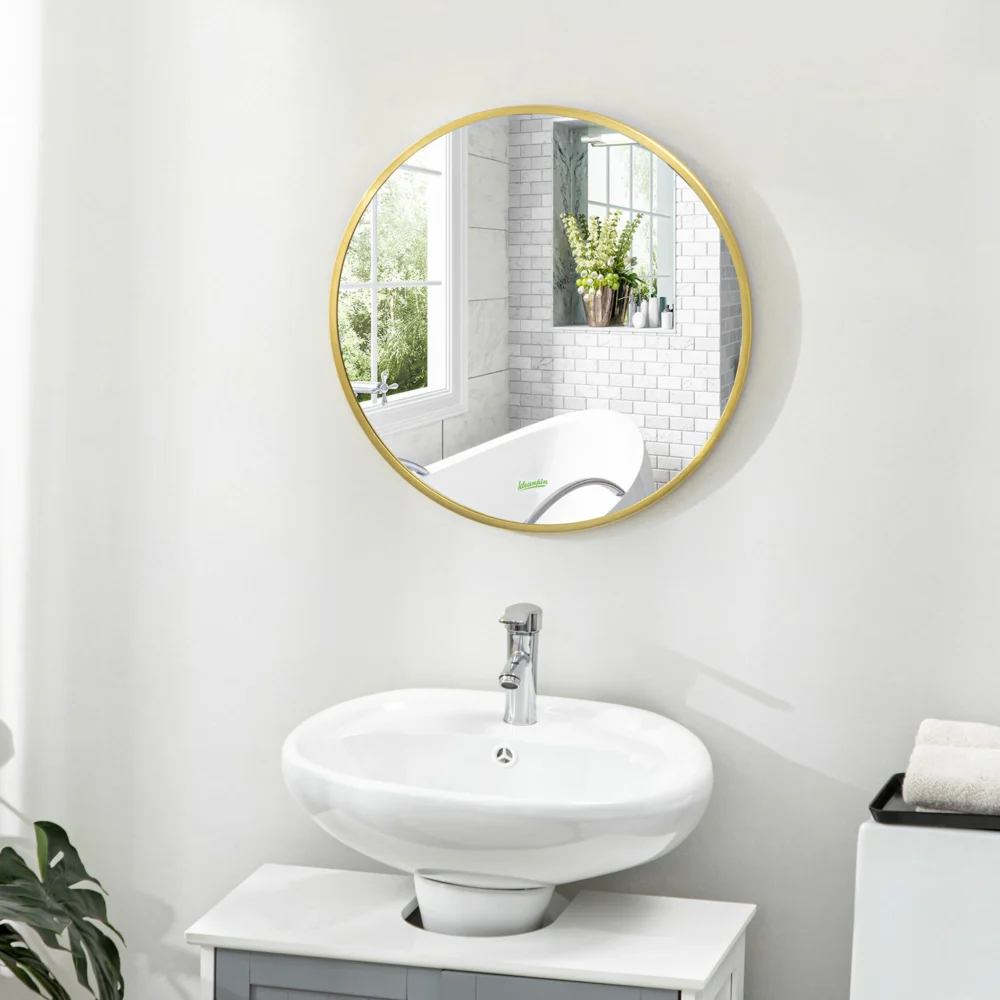 kleankin Στρογγυλός καθρέφτης μπάνιου με σκελετό από κράμα αλουμινίου, Ø50x2cm, χρυσός 834-394V01GD