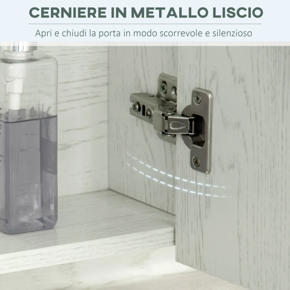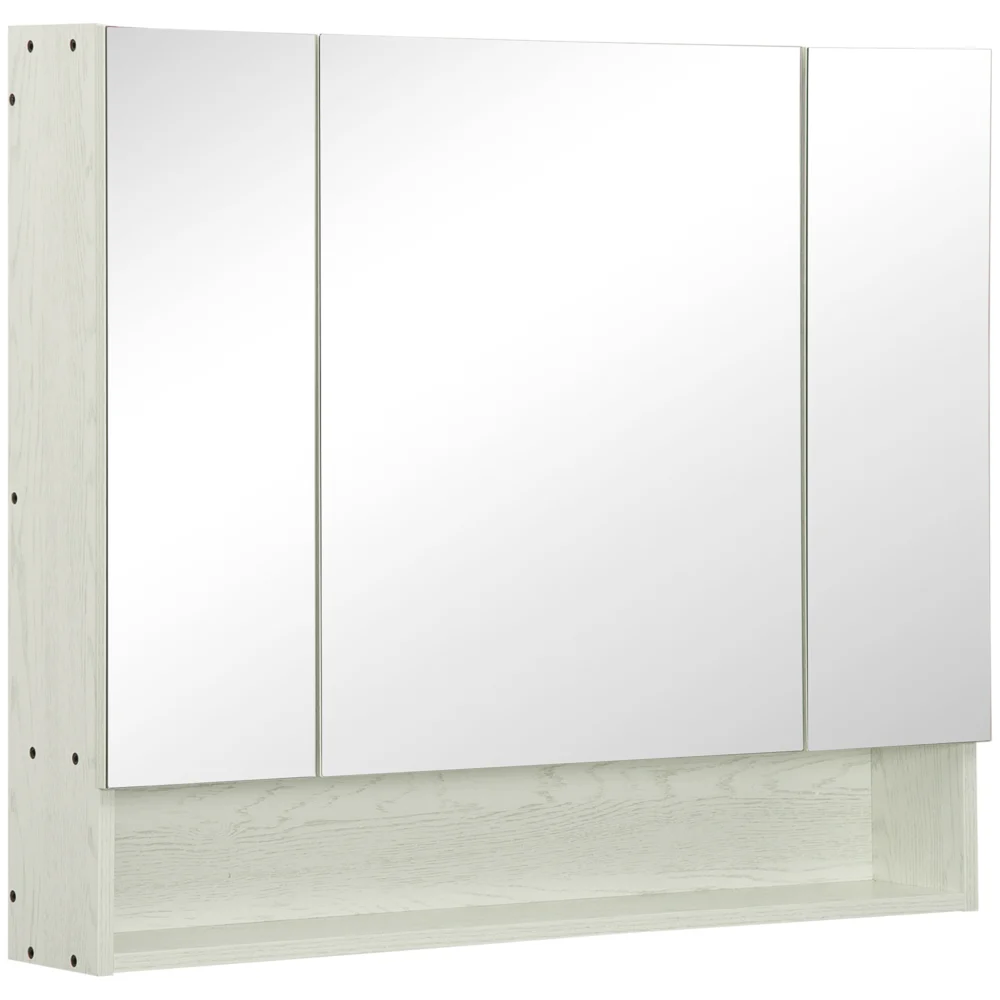 kleankin Ντουλάπα καθρέφτη μπάνιου με ρυθμιζόμενα ράφια, 3 πόρτες και μπουφέδες, 90x15x75cm 834-425WT