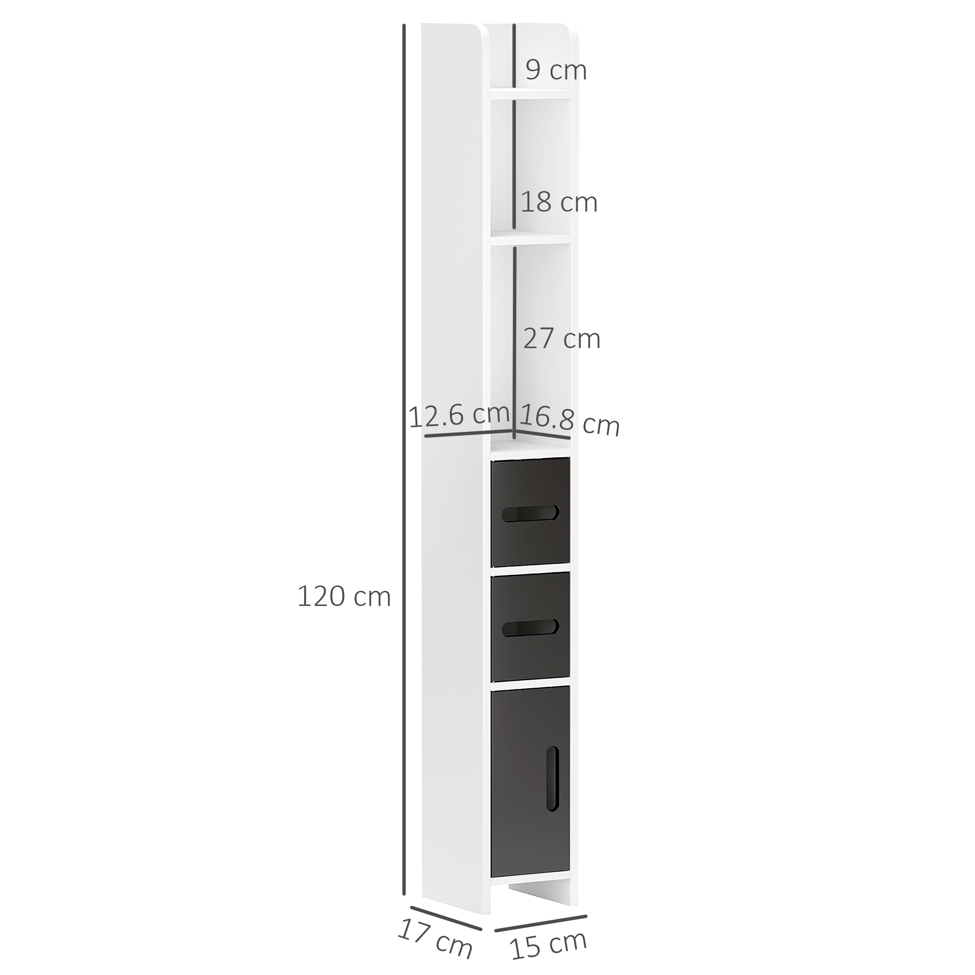 Kleankin Κολόνα μπάνιου kleankin με 3 ράφια και 3 ντουλάπια, από ξύλο, 15x17x120 εκ., σε λευκό και μαύρο χρώμα. 834-457V00BK