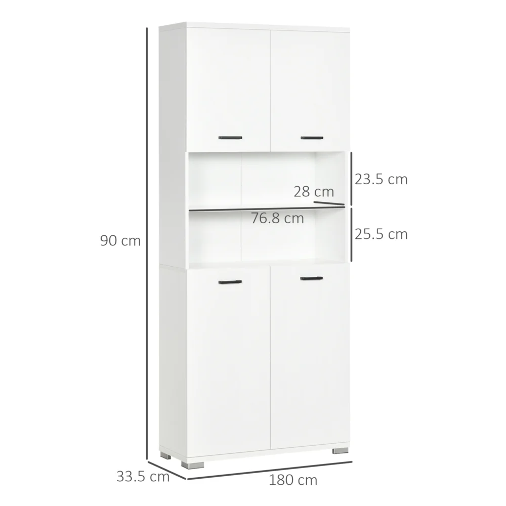kleankin Ντουλάπι μπάνιου από μοριοσανίδα λευκή με 2 ντουλάπια με πόρτες και 2 ανοιχτά ράφια, 80×33,5×190 cm 834-529V00WT