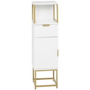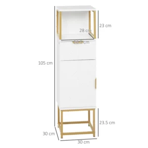 kleankin κολώνα μπάνιου με συρτάρι, ντουλάπι και ράφι από ξύλο και μέταλλο, 30x30x105cm, Λευκό 834-537V80WT