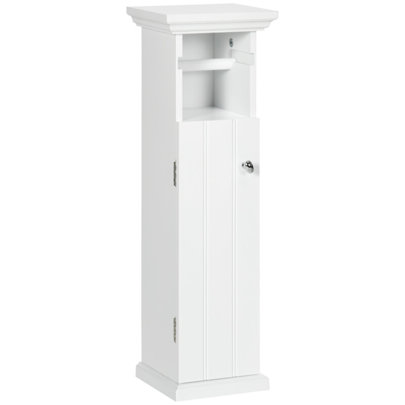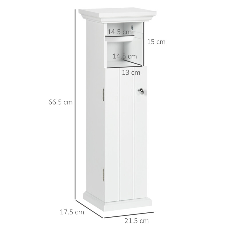 kleankin Ντουλάπι μπάνιου με θήκη για χαρτί υγείας και ντουλάπι από ξύλο MDF, 21,5×17,8×66,5 cm, Λευκό 834-557V00WT