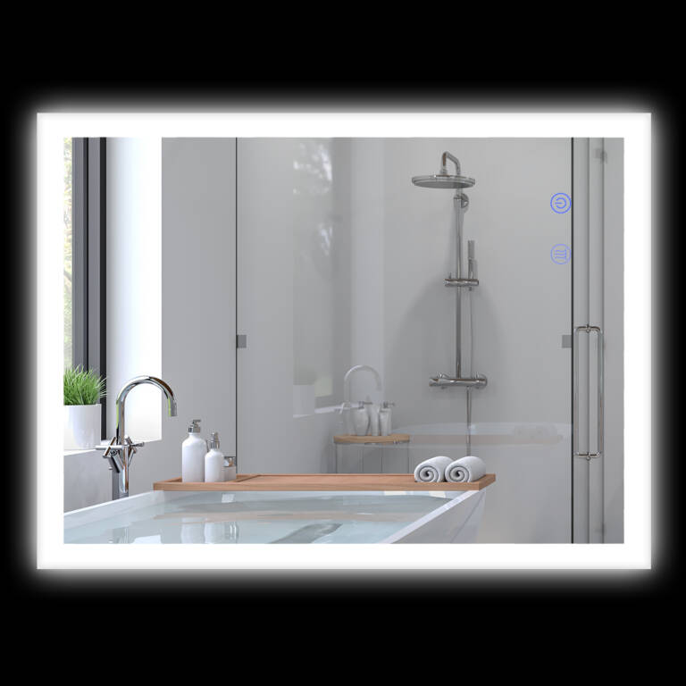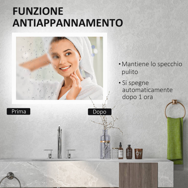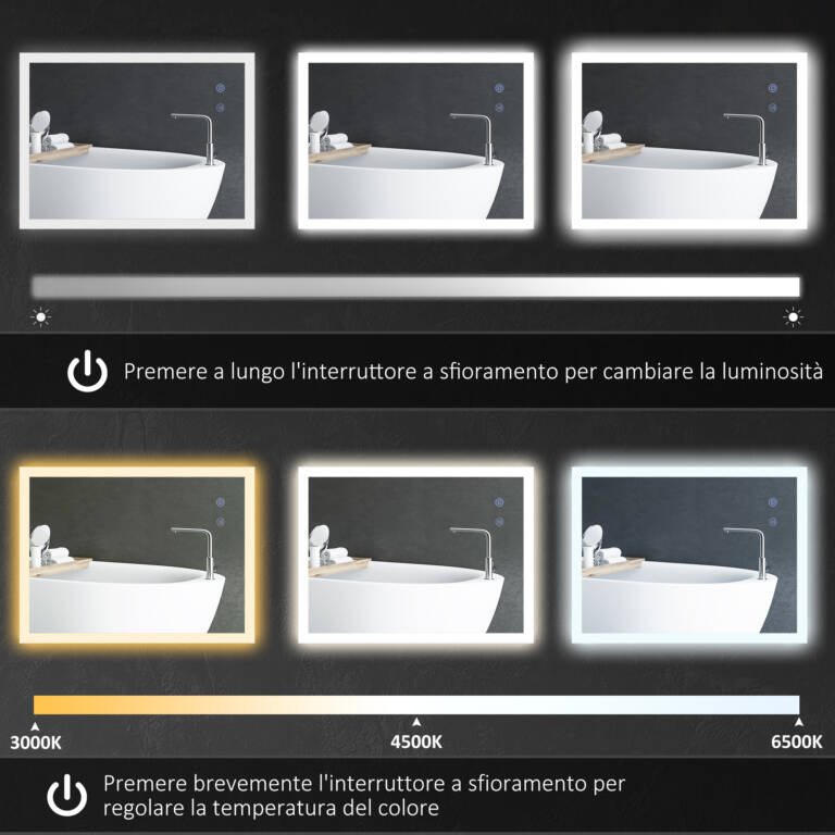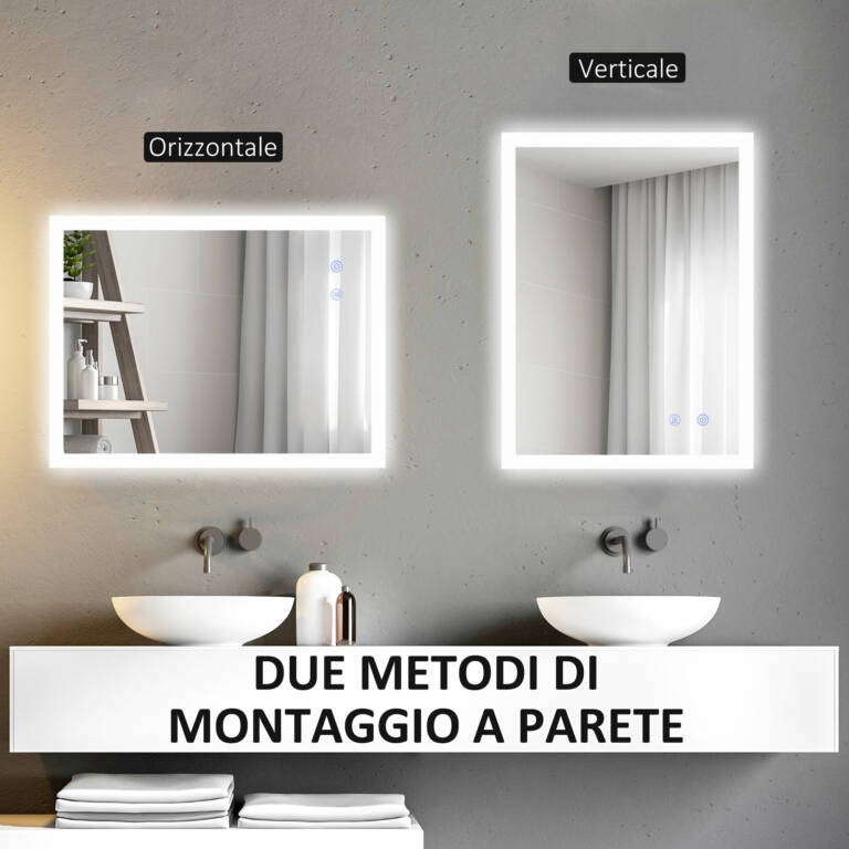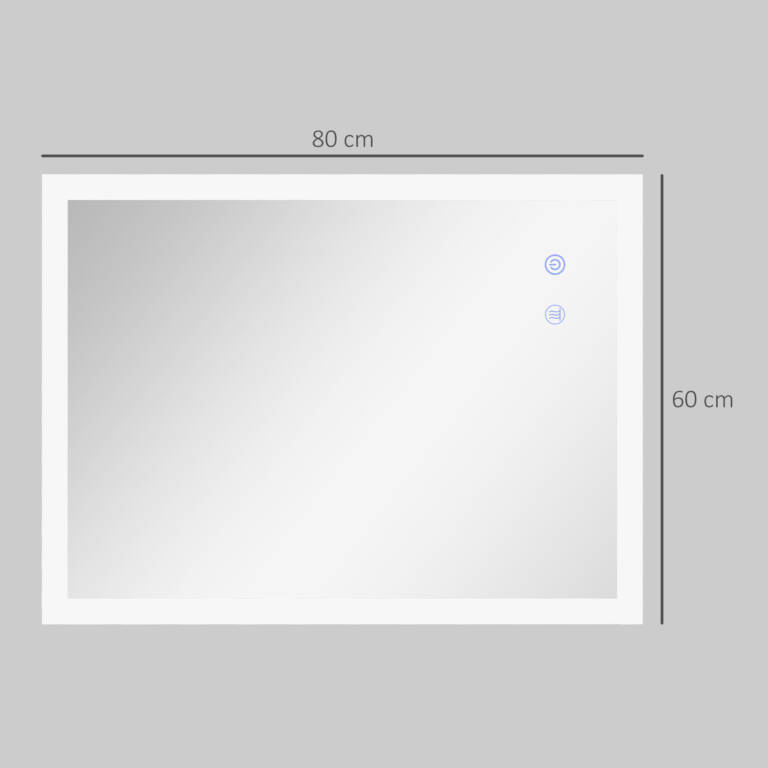 kleankin Καθρέφτης μπάνιου LED Αντιθαμβωτική με 3 Χρώματα και Ρυθμιζόμενη Φωτεινότητα, σε Μέταλλο και Γυαλί, 80x60x3 cm 834-590V01CR