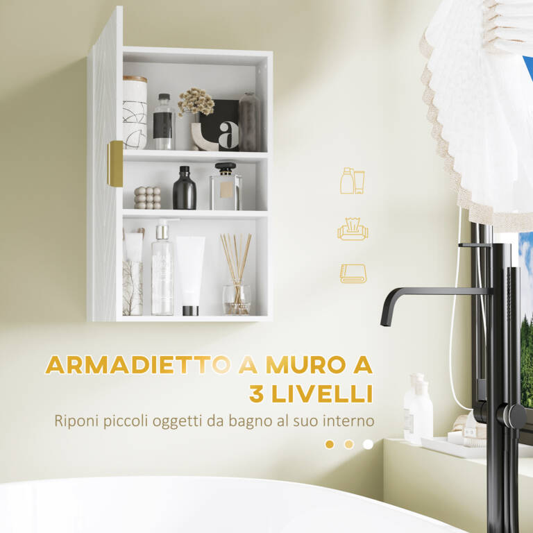 Kleankin Λευκή Ντουλάπα Μπάνιου Τοίχου με Διακοσμητική Πόρτα και Χρυσή Λαβή, 40x15x60 cm 837-339V80WT