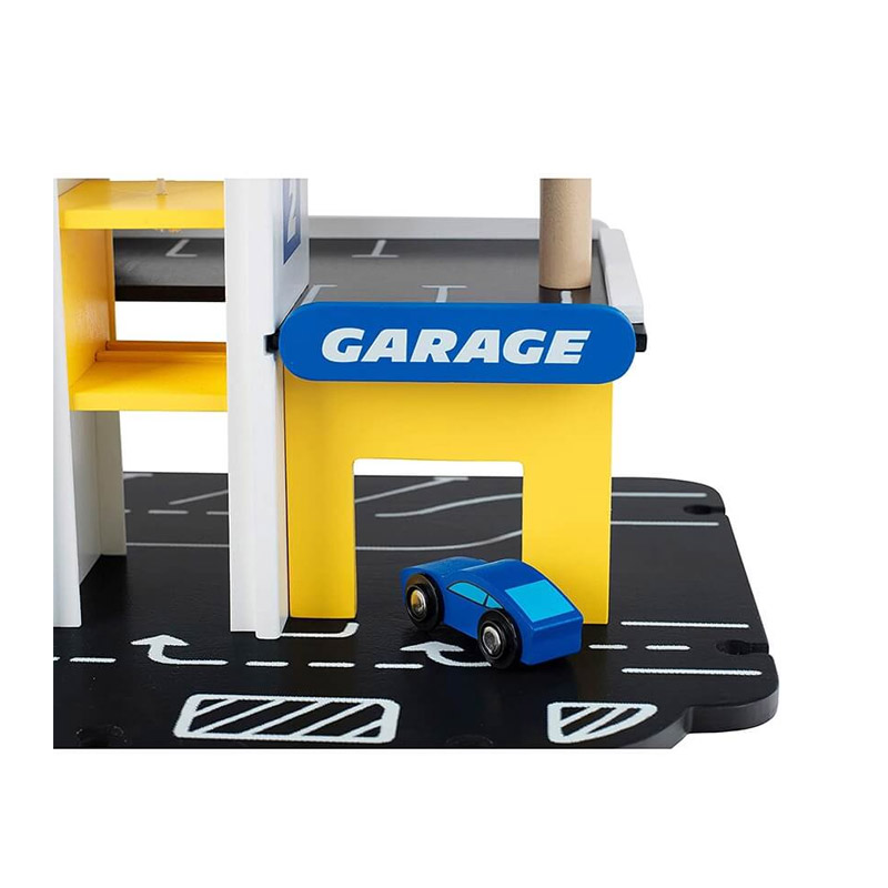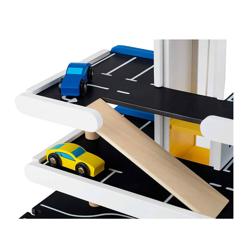 Το παιδικό γκαράζ στάθμευσης, από την εταιρία Klein, διαθέτει ξύλινη κατασκευή. Έχει τρία επίπεδα, σταθερές ράμπες κίνησης, πολλές θέσεις στάθμευσης, δύο αντλίες βενζίνης, ελικοδρόμιο και ανελκυστήρα που λειτουργεί εύκολα μέσω ενός περιστροφικού πόμολου. Στις εξόδους και τις εισόδους, έχει εσοχές όπου μπορεί εύκολα να συνδυαστεί με άλλες κοινές πίστες.