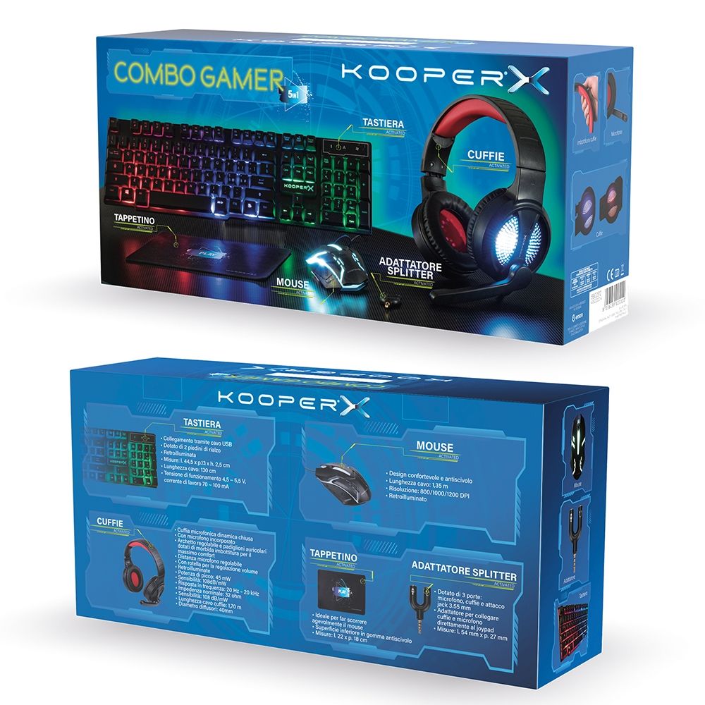 Kooper Σετ Gaming 5 σε 1 πληκτρολόγιο ακουστικά προσαρμογέας διαχωριστής ποντίκι και mouse pad Kooper X 5902512