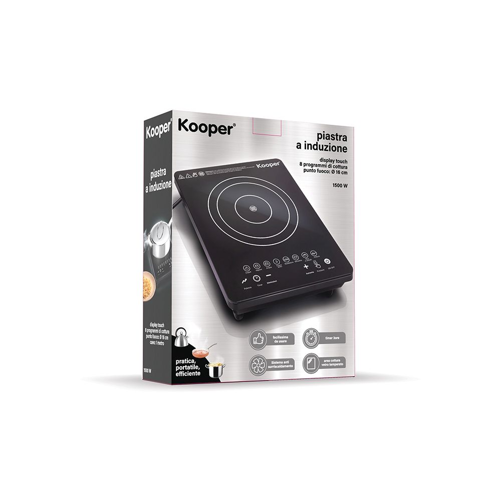 Kooper Μαύρη Επαγωγική Εστία με Οθόνη Αφής, 8 Αυτόματα Προγράμματα, 1500W – Kooper 5920749