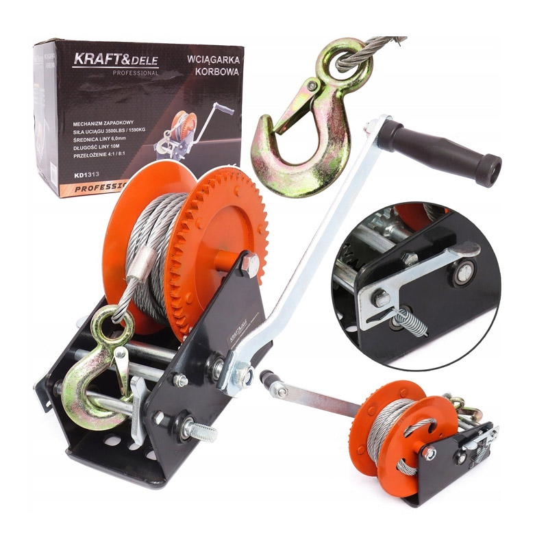 Ο εργάτης – βίντσι τρέιλερ, από την εταιρία Kraft&Dele, αποτελεί ιδανικό εργαλείο το οποίο διευκολύνει την έλξη μεγάλων ή βαρέων αντικειμένων. Είναι κατασκευασμένο από υλικά υψηλής ποιότητας με επαρκή αντοχή και είναι ανθεκτικό στις καιρικές συνθήκες. Διαθέτει ανθεκτικό σχοινί 10 m, μανιβέλα και έχει μέγιστο βάρος έλξης 1588 Kg. Έχει 2 γρανάζια για ακόμα μεγαλύτερη ακρίβεια και ασφάλεια και κλειδαριά ασφαλείας με ελατήριο καστάνιας, κατασκευασμένη από σκληρυμένο ατσάλι.