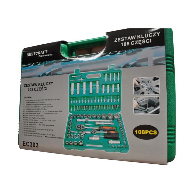 Το σετ, από την εταιρία Kraft&Dele, αποτελείται από 108 εργαλεία κατάλληλα για οικιακή και επαγγελματική χρήση. Τα εργαλεία, διαθέτουν επίστρωση χρωμίου, η οποία εγγυάται αντοχή στη διάβρωση, την οξείδωση και σε υψηλές θερμοκρασίες. Η προσθήκη βαναδίου αναστέλλει την ανάπτυξη των κόκκων κατά τη διάρκεια της θερμικής κατεργασίας.