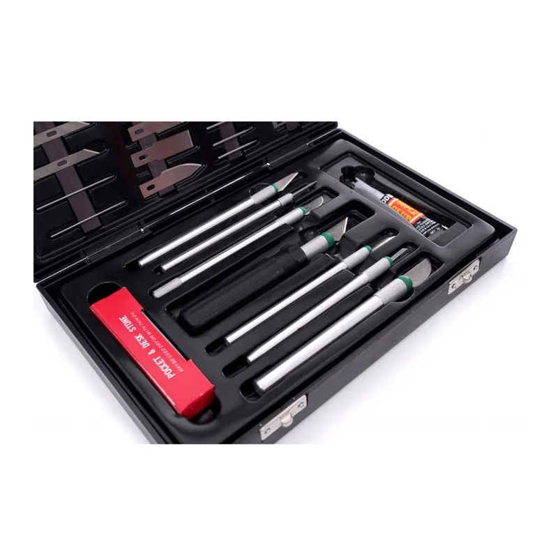 Το σετ, από την εταιρία Kraft&Dele, αποτελείται από 56 κοπίδια – νυστέρια χειροτεχνίας – γλυπτικής, εξαιρετικά αιχμηρά και ανθεκτικά. Συνοδεύονται από πρακτική θήκη αποθήκευσης και μεταφοράς.