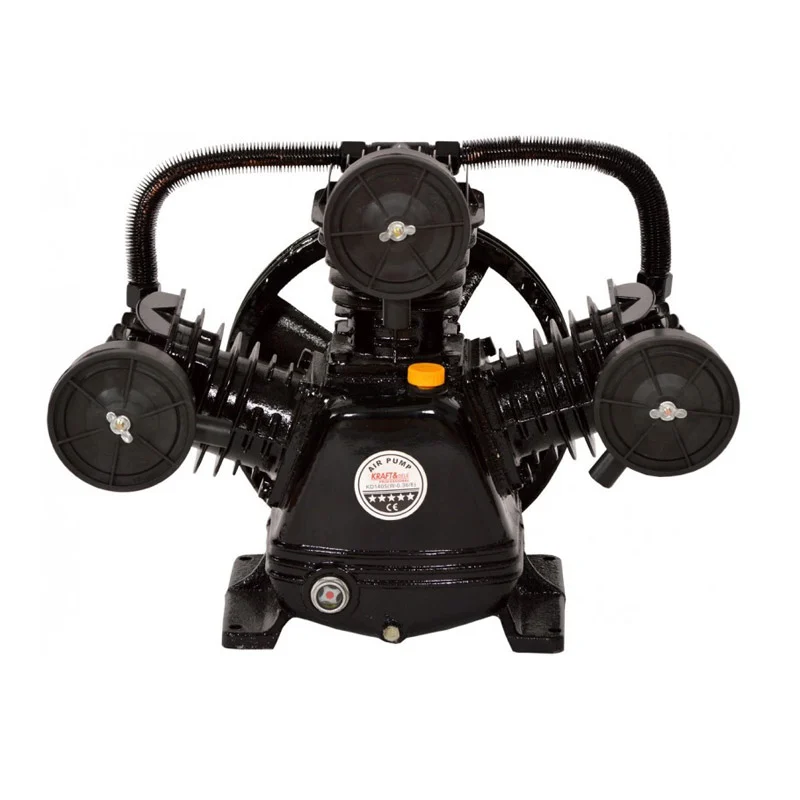 Ο αεροσυμπιεστής λαδιού, από την εταιρία Kraft&Dele, είναι κατασκευασμένος από ανθεκτικό και ελαφρύ χυτοσίδηρο. Είναι εξοπλισμένος με μία τροχαλία που ταυτόχρονα ψύχει τον συμπιεστή και τον πλαϊνό ψύκτη αέρα. Επιπλέον, περιλαμβάνει 3 έμβολα και έχει μέγιστη πίεση 8 Bar.