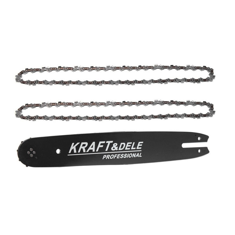 Το σετ, από την εταιρία Kraft&Dele, αποτελείται από λάμα αλυσοπρίονου και 2 αλυσίδες. Η λάμα είναι κατάλληλη για αλυσοπρίονα πολλών εμπορικών σημάτων, συμπεριλαμβανομένων των Stihl, Husqvarna, Alpina, Kraft&Dele και πολλών άλλων που εργάζονται με αλυσίδες 3/8 και πλάτος λάμας 1.3 mm.