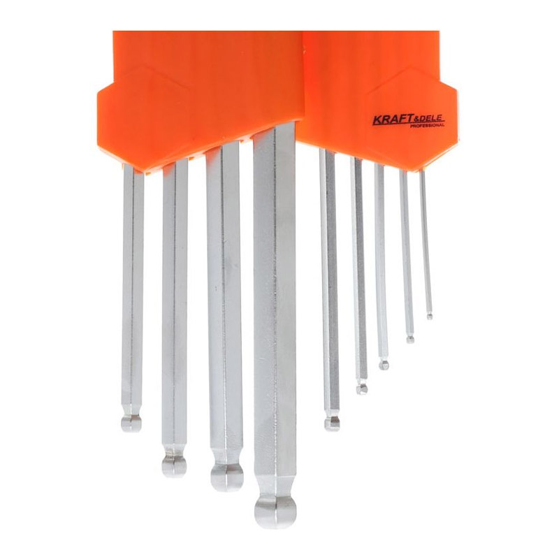 Το σετ από την εταιρεία Kraft&Dele αποτελείται από 9 εξάγωνα κλειδιά Allen, διαφορετικού μεγέθους, κατασκευασμένα από ανθεκτικό ατσάλι χρωμίου – βαναδίου, που χαρακτηρίζεται από αντοχή και ελαστικότητα.
