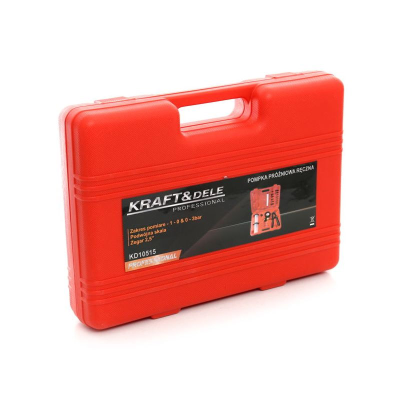 Το σετ, από την εταιρία Kraft&Dele, χρησιμοποιείται για τη μέτρηση της πίεσης και την εξαέρωση των φρένων και του συμπλέκτη και στον μηχανικό έλεγχο του κινητήρα,. Περιλαμβάνει χειροκίνητη αντλία κενού με μανόμετρο και διάφορα απαραίτητα αξεσουάρ.
