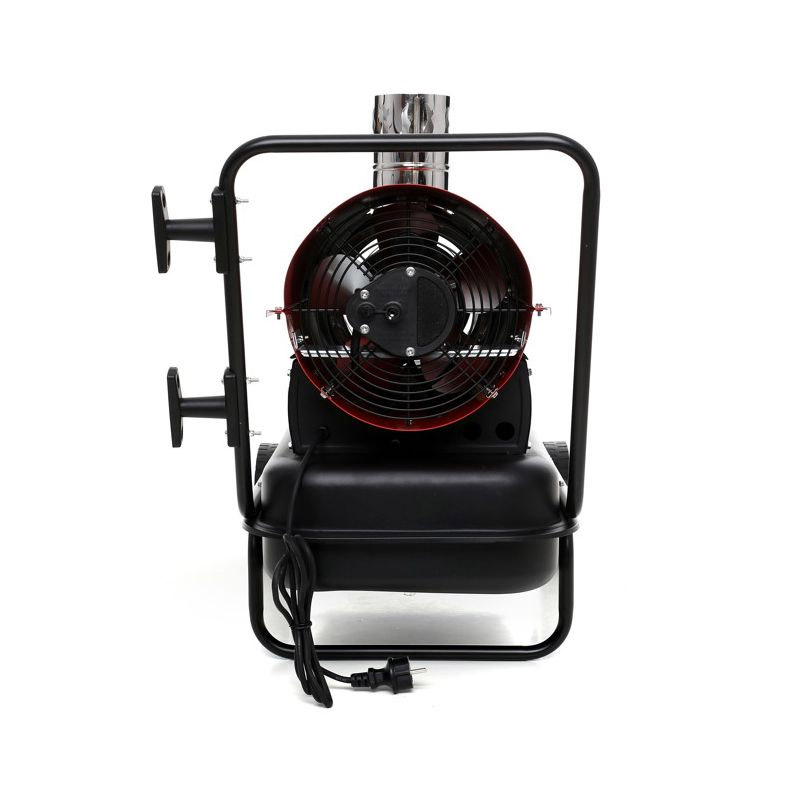 Το αερόθερμο περιλαμβάνει καμινάδα, για υποδοχή καπνοδόχου, ώστε ο καπνός από το καύσιμο να μεταφέρεται με ασφάλεια εκτός του χώρου, δίνοντάς τη δυνατότητα να το χρησιμοποιείτε και σε εσωτερικούς χώρους.