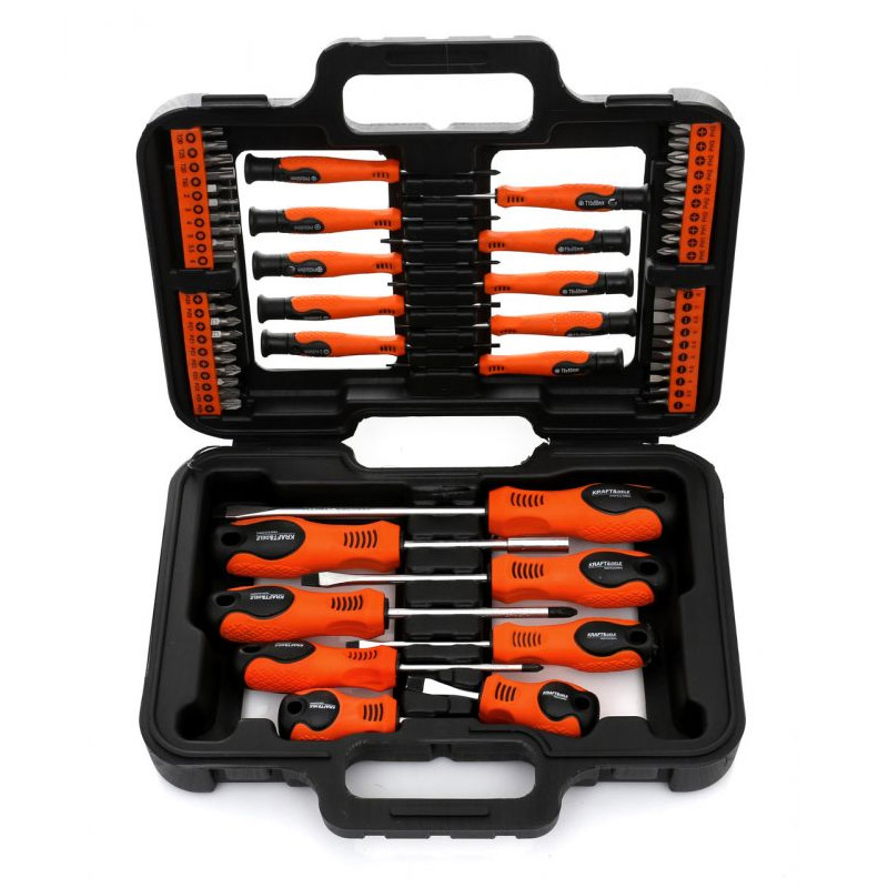Το σετ, από την εταιρία Kraft&Dele, αποτελείται από κατσαβίδια και μύτες, για όλες τις εργασίες στο σπίτι. Συνοδεύεται από βαλιτσάκι μεταφοράς και αποθήκευσης.
