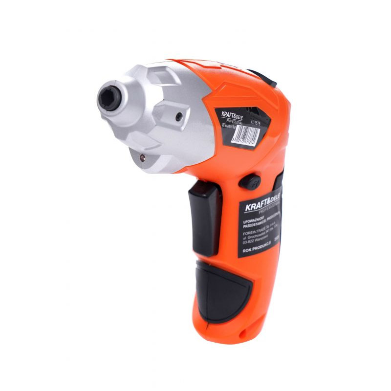 Το επαναφορτιζόμενο ασύρματο κατσαβίδι, από την εταιρία Kraft&Dele, διαθέτει μπαταρία ιόντων λιθίου 3.6 V 800 mAh με μεγάλη διάρκεια και επαναφορτίζεται εύκολα και γρήγορα. Είναι εξοπλισμένο με λυχνία LED που λειτουργεί ως μικρός φακός που φωτίζει τον χώρο εργασίας και έτσι μπορείτε να εργαστείτε ακόμη και σε δύσκολες συνθήκες φωτισμού.
